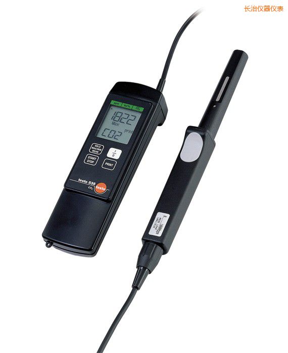 testo 535 CO2测量仪,有效地测量室内空气质量。室内CO2含量过高(大于1000 ppm)时,,可能导致疲倦、注意力低下及不适。可通过testo打印机打印现场数据。保护软套,防尘、防水、防撞击 (选配)。