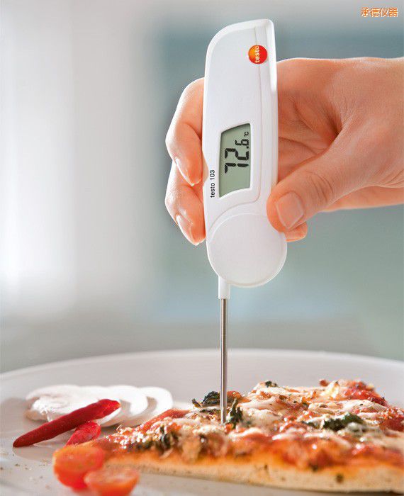 testo 103 可折叠式温度计。适用于食品生产车间、餐饮、酒店、工业厨房、超级市场等的快速测量。该款温度仪外形小巧、经济实用。探针展开 30°角即可测量, 使用方便. 使用过后,,折叠探针放置, testo 103 符合 HACCP及EN 13485。