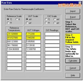 可输入或导入校准的电阻或电压原始数据。TableWare