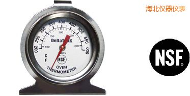 烤箱温度计,,型号29005,,是由不锈钢和玻璃模板制成。悬挂或直立在烤箱内清晰显示华氏或摄氏的烤箱温度。温度计耐热至315℃,美国NSF认证。 应用: 清晰的读盘显示烤箱温度. 不锈钢制作,,50mm 读盘和双金属线圈和玻璃镜片。可悬挂或垂直放置。NSF 认证。