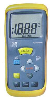 ● K型温度探头的单温测量,分辩率为0.1℃ ● 超大31/2(1999位)带功能带提示液晶显示屏 ● 基本精确度0.5%,,℃/℉可转换按键 ● 最大值读数和数据保持功能 ● 附件:9V电池,,带支架护套,,K型温度探头 、说明书,合格证及保修卡 ● 规格/重量:120×75×40毫米/200克