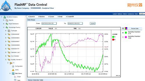 DeltaTrak公司的FlashRF数据中心是基于云基础应用技术,,它使系统有了更大的视图和本地安装的2.4 GHz射频无线温湿度网络监测的控制。