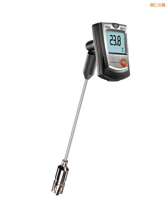 订货号:0560 9056 testo 905-T2表面温度计,包括固定夹和电池。