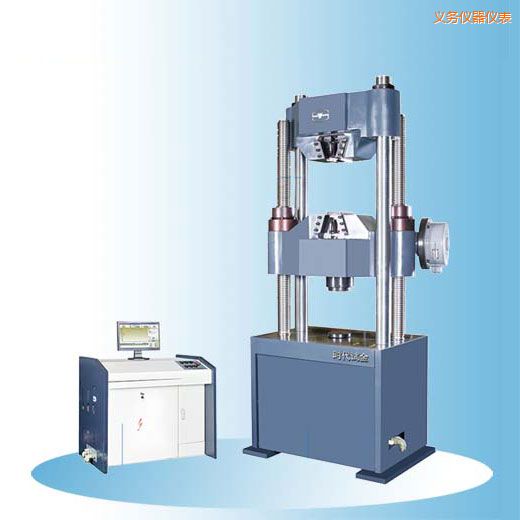 WAW-300C/600C/1000C型微机控制电液伺服万能试验机,主要用于金属、非金属的拉伸、压缩、弯曲、剪切等试验。增加简单的附具和装置,,还能对木材、水泥、混凝土、橡胶及其制品进行试验。 GB/T 228.1-2010《金属材料 拉伸试验 第1部分 室温试验方法》 1.WAW-300C/600C/1000C型微机控制电液伺服万能试验机,采用油缸下置式主机,拉伸空间位于主机的上方,压缩、弯曲试验空间位于主机下横梁和工作台之间油缸活塞采用间隙密封经久耐用 2.下横梁升降采用盘式电机、蜗轮蜗杆、螺母转动带动横梁升降 3.高精度油压传感器测力测量精度高,,便于维修更换 4.采用进口液压油泵 5.采用进口电液伺服阀控制精度高 6.高精度测控系统控制精度高(自主产权) 7.软件技术(自主产权)…….