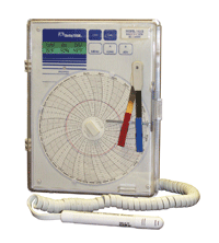 DeltaTrak的温度/湿度/露点圆图记录仪, 型号14013(110V)和14014(220V), 提供温度和相对湿度同步监测。它有四个不同的图表速度:12小时、24小时、7天及31天。图表有oF或oC两种。记录范围为-30℃?50°C,相对湿 度10%~90%。该记录仪也可计算露点。有一个易阅读的液晶显示屏和全功能的温度超范围警报特点。