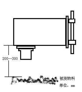 将传感器安装于需要测定物料含水量的部位传感器与被测物料面基本垂直并保持间距为250mm左右(见图)。