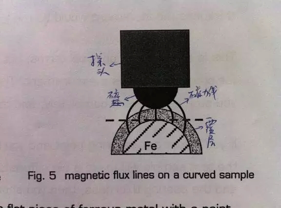 但是如果实际测量时基体的几何形状变了比如变成了圆柱体但涂层厚度不变。磁力线会有什么样的变化呢?我们来看看图Fig.5