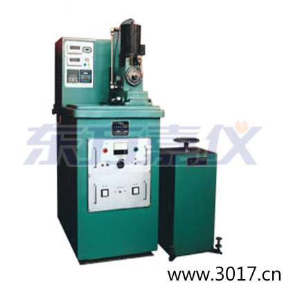 MR-H5A环块摩擦磨损试验机主要用来做各种润滑油和脂在滑动摩擦状态下的承载能力和摩擦特性的试验;摩擦磨损试验机也可 以用来做各种金属材料和非金属材料(尼龙、塑料等)在滑动摩擦状态下的耐磨性能的试验;同时也可以测定各种材料的摩擦力,橡胶摩擦磨损试验机,并推算出各种材料的摩擦系数。 1.试验机的组成 MR-H5A环块摩擦试验机 由机身与工作台、主轴与杠杆机构、1.5kW(0-1500r/min)的直流电机、转速数字显示仪、温度控制器、电子式时间继电器、电器箱和直流调速系 统装置、润滑系统和加热装置、施力装置、试样及附件等几个部分组成。 2.试验机结构简述 直流调速电机通过法兰盘带动前端装有试环的主轴做顺时针方向旋转。 磁电传感器通过装在主轴上的测速齿轮直接测量出主轴的转速,并在转速数字显示仪上显示出来。主轴上的皮带轮通过齿形同步带带动在齿轮油泵加长轴上空转的皮 带轮转动,试验机油从油罐流经试环试块面间到主轴座油槽里,皮带轮通过手把控制传动离合器带动齿轮油泵,把试验油又抽回到油罐里,这样试验油可循环使用。 如将传动离合器的手把插在上面的定位孔里时,磨损磨耗试验机,则传动离合器与皮带轮脱开,皮带轮在齿轮油泵加长轴上空转;如将传动离合器的手把插在下面的定位孔里时,四球摩擦磨损试验机,则传 动离合器与皮带轮啮合,带动齿轮油泵运转。 圆刀承骑在刀刃底座刀刃上,上面支承着摩擦力杆,金属摩擦磨损试验机,试验力杆骑在摩擦力杆的刀刃上,真空磨损试验机,左端支承着装夹着试块的试块座,摩擦磨损拆式试验机,试块座上的试块挡板正好卡在装在主轴轴端 的铜滑套上。试块座试验力杆摩擦力杆组成了一套完整的既能施力又能测力的杠杆机构。通过10:1的试验力杆把试验力传递给试块而对作顺时针旋转的试环施加 试验力P;通过对摩擦力杆施加试验力来平衡试环试块面间的摩擦力F,umt摩擦磨损试验机,根据P和F来推出摩擦系数μ值。 施力装置由550W,塑料滑动摩擦磨损试验机,1400r/min的三相微型异步电动机通过皮带轮,三角皮带,环块磨损试验机,大皮带轮带动蜗杆和蜗轮及螺杆和升降螺母使砣盘以 8.92-13.33N/S的均匀速率,动载磨粒磨损试验机,平稳的将砣加到(或卸除)试验力杆的右端V形槽中,消除冲击试验力对试验结果的影响。 做润滑油试验时,通过电加热器将润滑油加热。由铂热电阻测量油温,温控仪表自动控制油的温度。