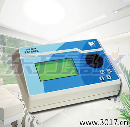 * 国家标准方法。 家具·人造板: (GB18584-2001,,GB18580-2001) 胶粘剂:(GB18583-2008) * 检测时间15分钟。 * 大屏幕液晶中文显示,,单片机智能控制,,人机交互式操作。 * 专用样品前处理设备和一次性试剂盒。 * 直接显示样品溶液浓度值。 * 可定量检测出纺织品、家具、人造板、胶粘剂、涂料和空气中甲醛含量。 技术指标 * 测定下限: 家具·人造板: 0.1 mg/L(干燥器法) 0 1mg/100g(穿孔萃取法) 0.05mg/ m3 (气候箱法) 胶粘剂:0.01g/kg * 测定范围: 家具·人造板: