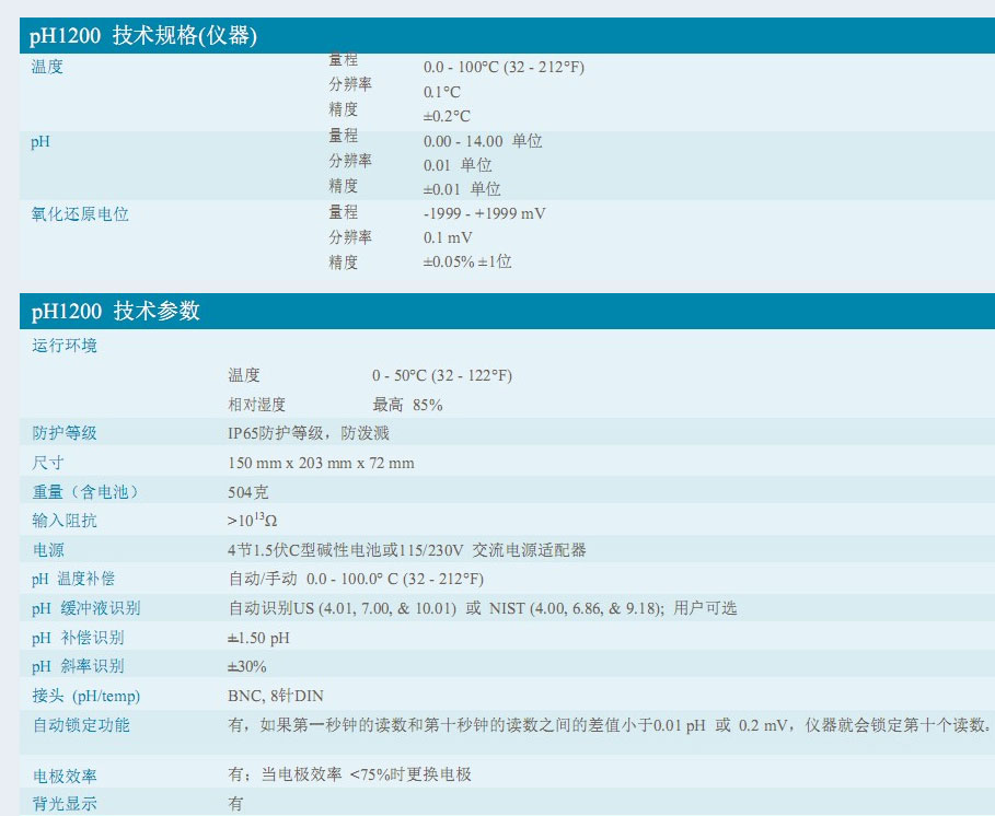 YSI 1200 实验室pH计简单、精实验室级别的pH、氧化还原电位和温度测量仪。YSI pH1200是一台精并可靠、用于测量pH和氧化还原电位的实验室仪器。自动锁定功能可以在读数稳定时自动在屏幕上锁定读数。带有缓冲液自动识别功能的简单的1点、2点或3点校准确保数据的精。仪器可以使用电池或交流电源供电。pH 1200配备了一个带有大尺寸、方便读取数据并带有背光显示屏的操作键盘,ph计 便携式,非常适合实验室使用。